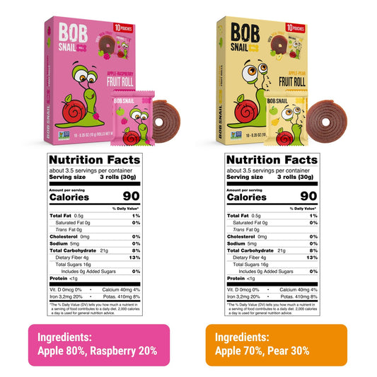 Bob Snail Fruit Roll Ups – 50 Fruit Snacks (Apple-Pear & Apple-Raspberry), Vegan, No Added Sugar, No Nuts, Gluten free, 500g