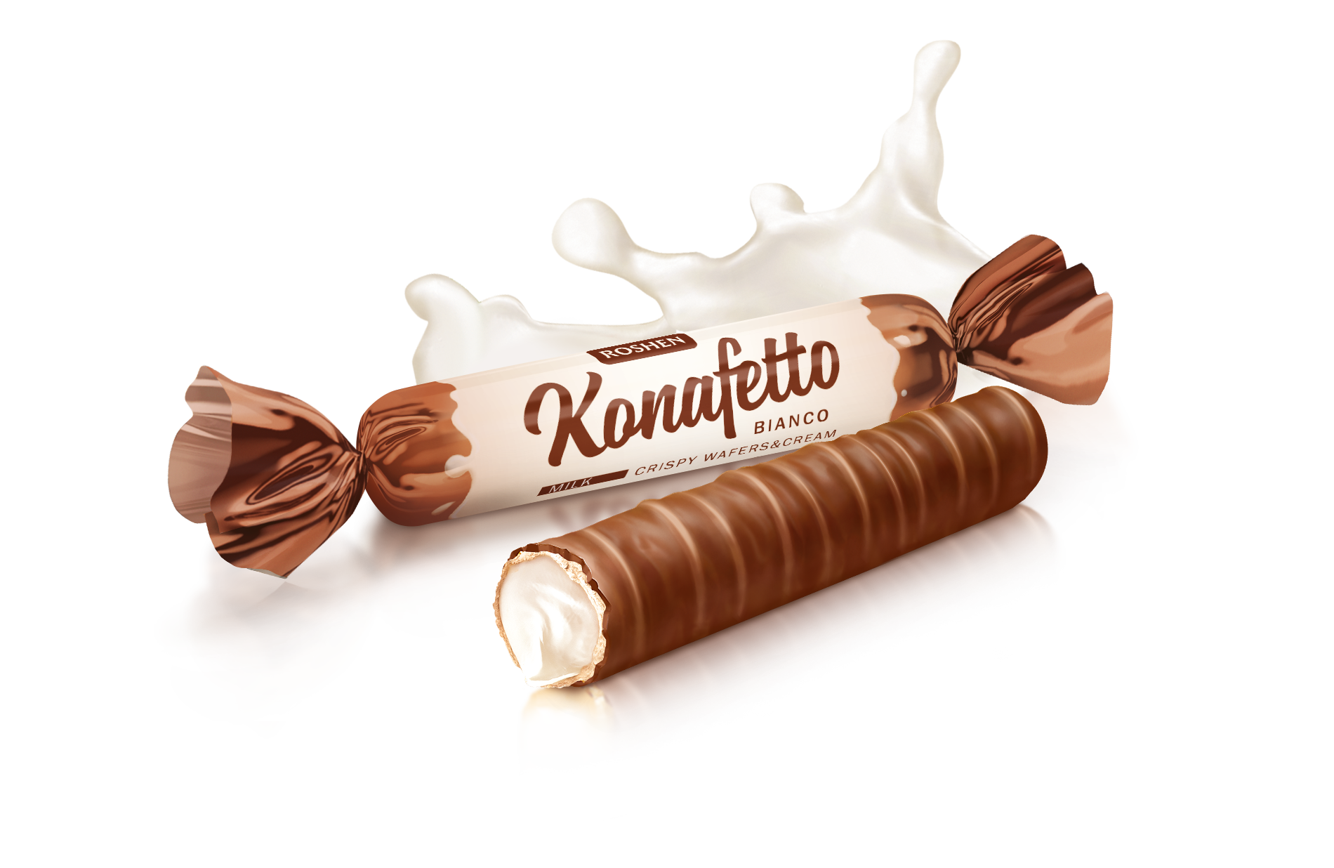 Roshen KONAFETTO BLANC, crispy tubes in chocolate glaze with cream filling 1 kg